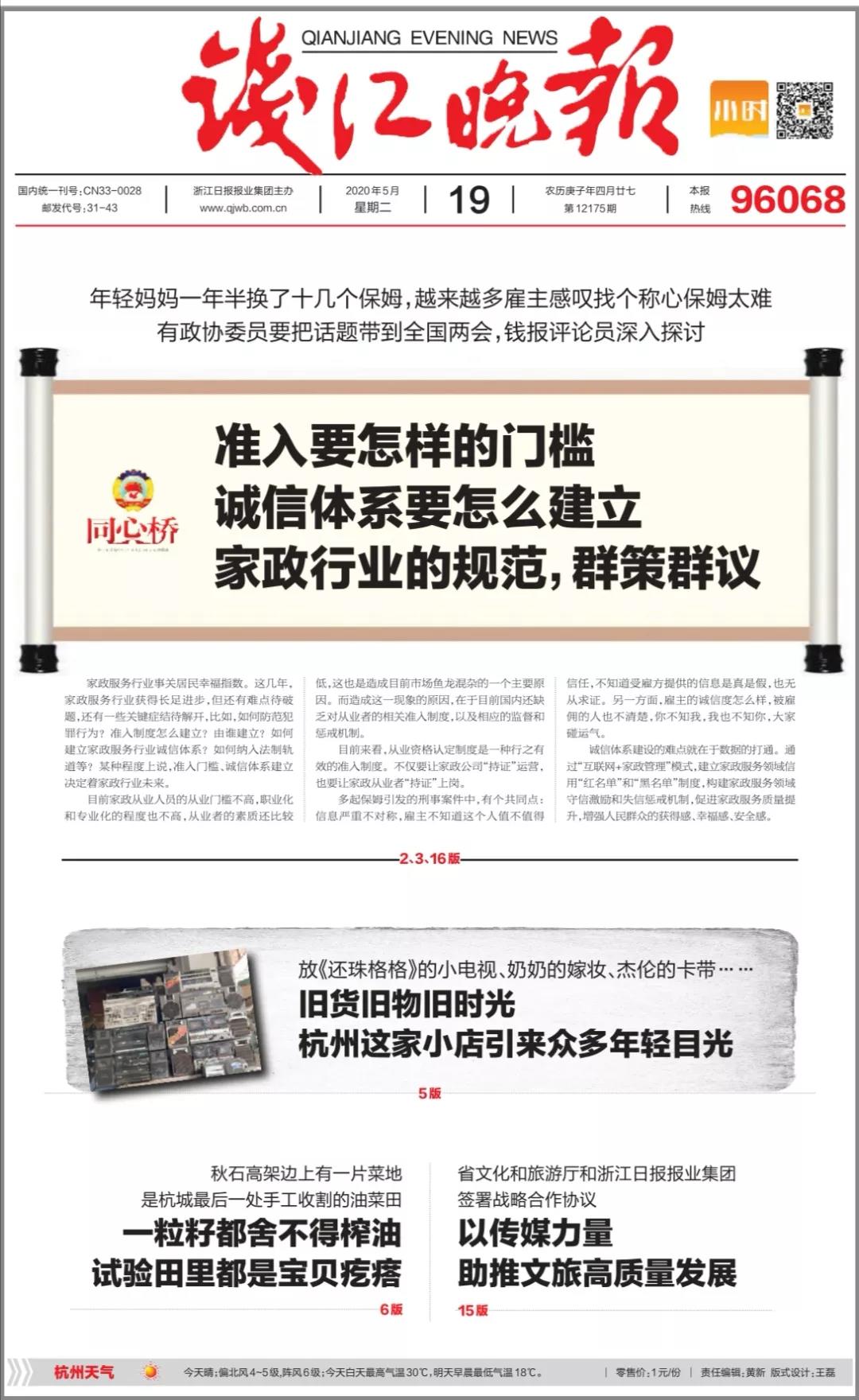 錢江晚報整版報道遐齡薈互聯(lián)網(wǎng)思維家政服務(wù)