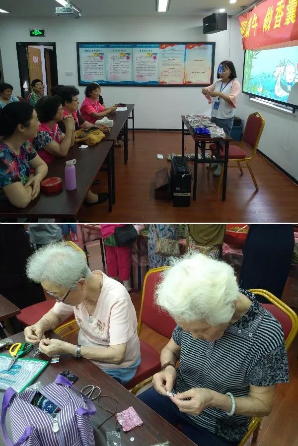 在社區(qū)人員的引導(dǎo)下,老人們細(xì)致的制作一個(gè)個(gè)香囊,穿針線、縫雛形、裝香料,有條不紊。