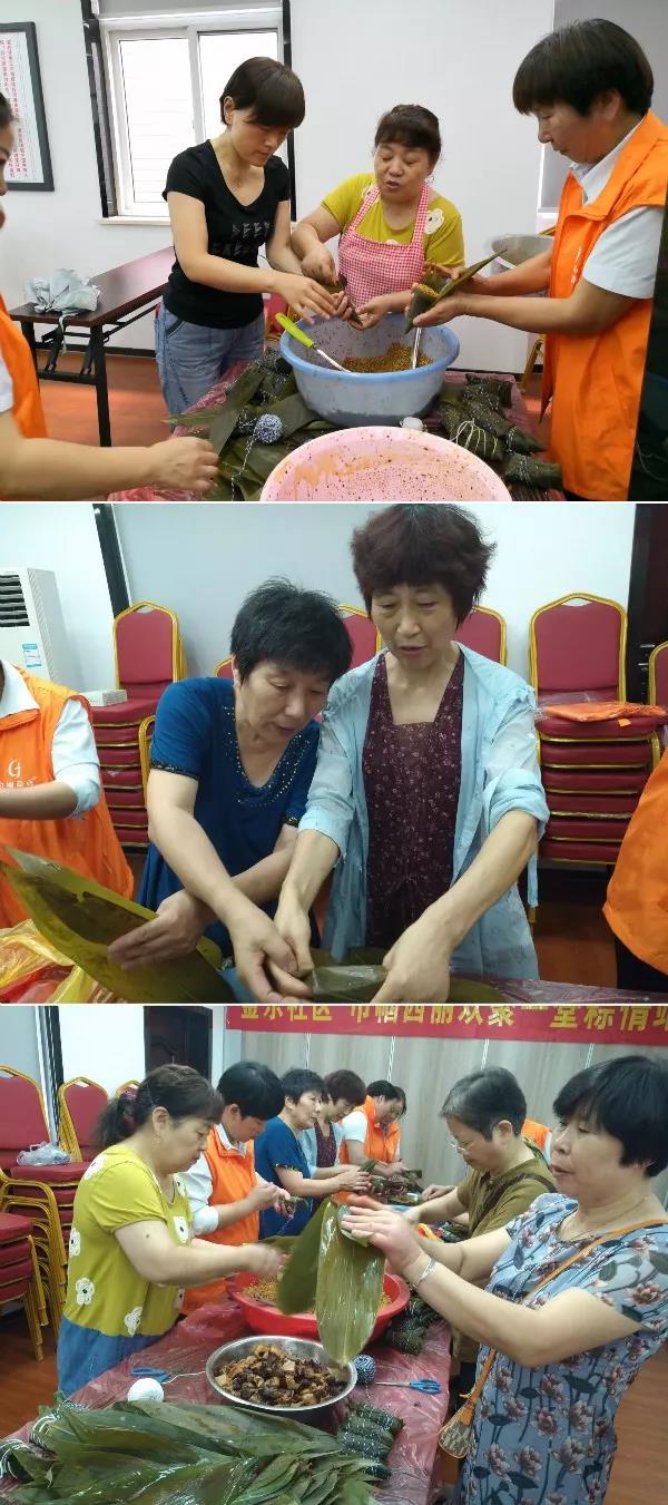 活動(dòng)開(kāi)始,大家圍在一起,紛紛露出看家本領(lǐng),捋粽葉、填糯米、封口扎捆等,不一會(huì)兒功夫,一只只漂亮的粽子便成形了。文新街道辦事處副主任高月虹也加入了包粽子隊(duì)伍,大家互相傳教方法,忙的不亦樂(lè)乎。