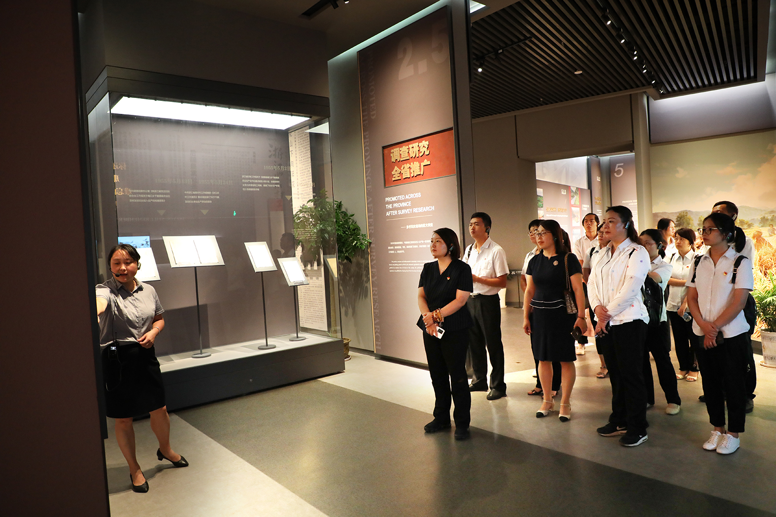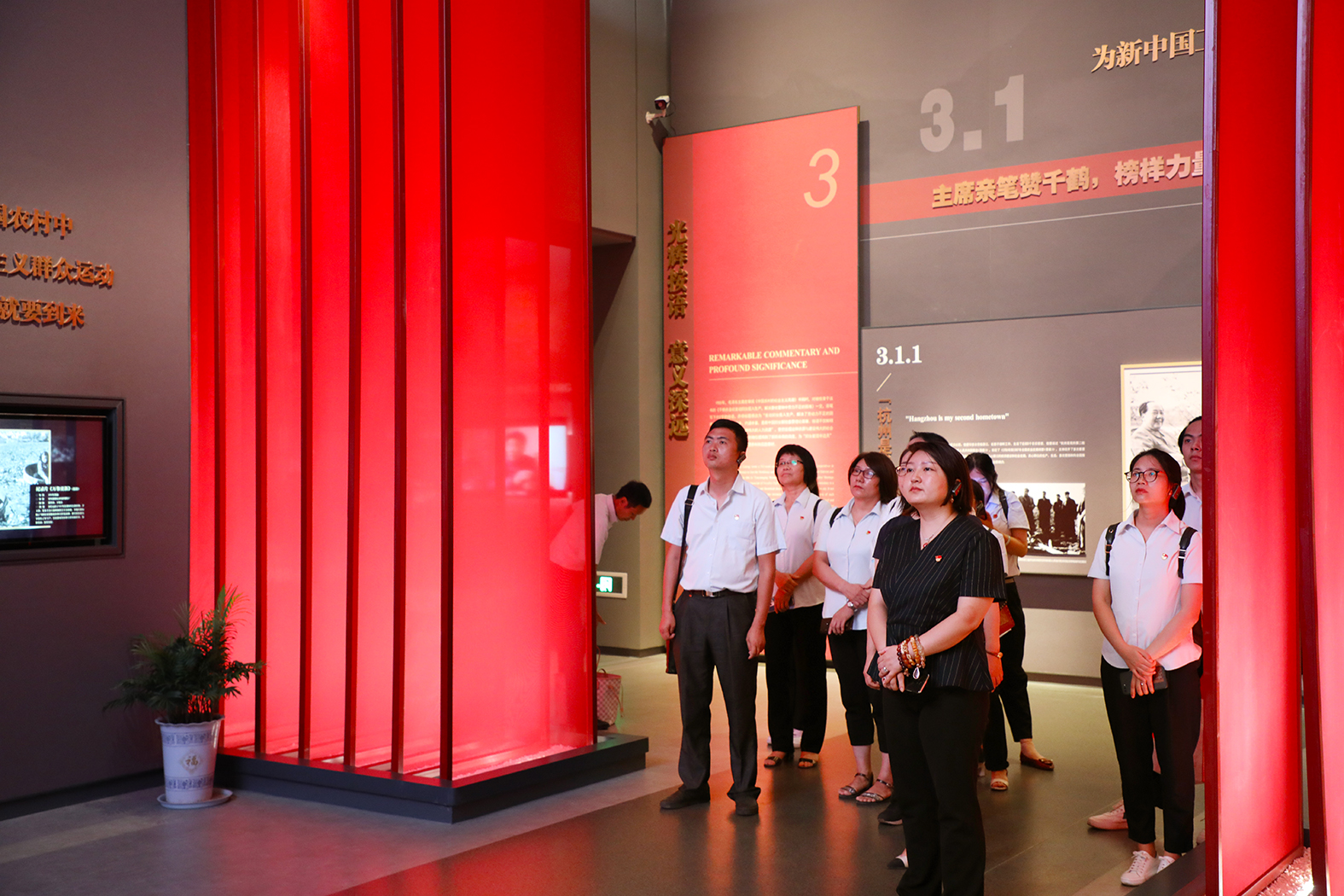 在講解員的帶領(lǐng)下,千鶴的時(shí)代背景及歷史沿革和現(xiàn)代解讀,一步步的展現(xiàn)在大家面前,千鶴婦女打破千年舊俗,走出家庭,參加農(nóng)業(yè)生產(chǎn),孕育了“自強(qiáng)奮斗撐起半邊天,創(chuàng)新創(chuàng)業(yè)敢為天下先,忠誠奉獻(xiàn)共圓家國夢”的千鶴婦女精神,得到了毛澤東主席的關(guān)注并寫下了長達(dá)512字的按語,使千鶴成為“婦女能頂半邊天”思想的重要發(fā)源地,成為新中國婦女的一面光輝旗幟。