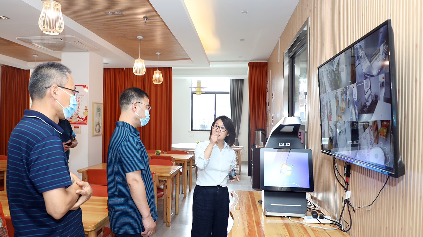 在遐齡薈楊家牌樓院工作人員的帶領(lǐng)下,李局長一行人先來到一樓的陽光餐廳,對餐廳的智慧設(shè)施及惠民措施等問題逐一了解詢問,并表示:智慧化養(yǎng)老模式先進(jìn),值得借鑒學(xué)習(xí)。