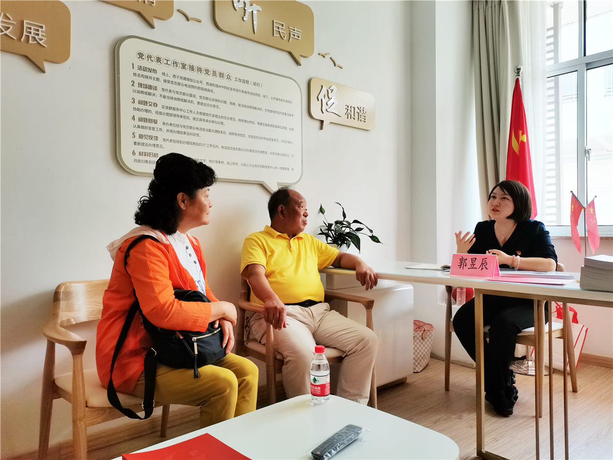 幾位頭發(fā)花白的阿姨走進黨代表活動室里,市黨代表、杭州巾幗西麗黨委書記、總經理郭昱辰停下手頭工作,主動詢問阿姨,提供金色陽光居家養(yǎng)老服務咨詢。阿姨們一開始抱著懷疑的態(tài)度,不一會就喜笑顏開,細心了解養(yǎng)老情況,還帶走幾冊資料說要帶給沒來的姐妹。