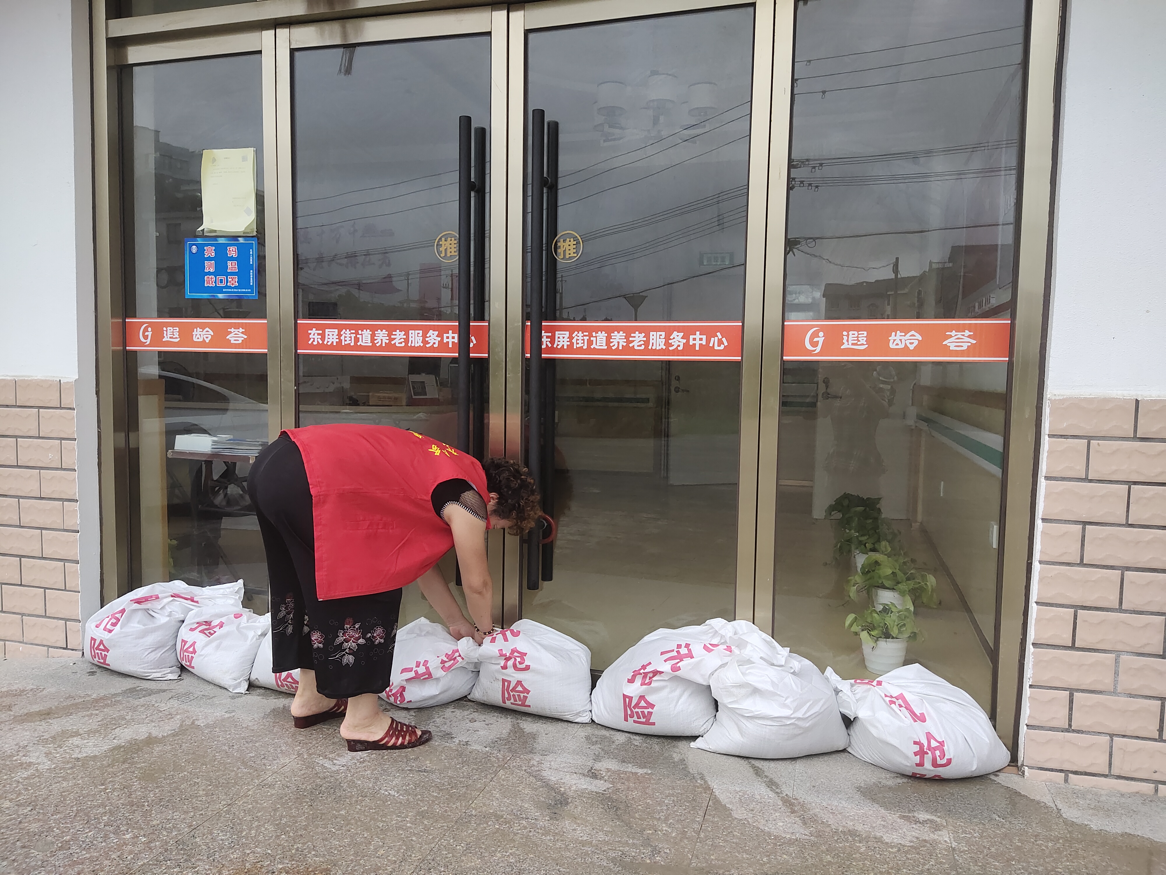 養(yǎng)老中心日間照料服務點的工作人員對老人進行安全宣導,積極幫助老人們做好預防臺風的工作,對一樓門口進行沙袋防護。提前排查安全隱患,確認水、電、氣等設備安全運行,組織陽光食堂補充配備食品、飲用水、應急藥品、水果等物資,積極做好后勤保障準備工作。