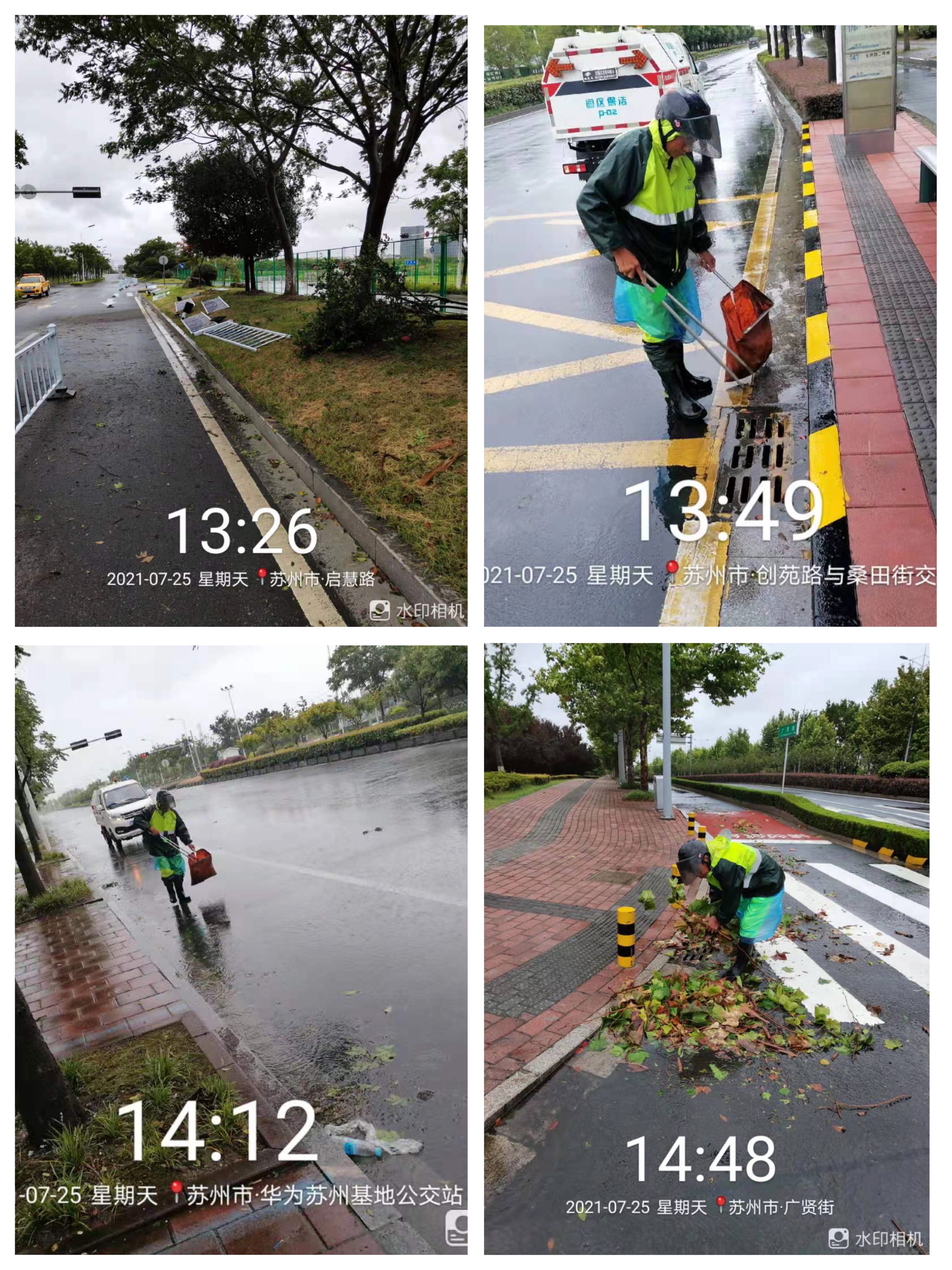 此次臺風來襲前,公司領導高度重視,積極行動,制定周密的防臺工作預案,蘇州服務部每個標段安排20名應急人員,全天24小時待命巡查。每天早晨6:30前,下午14:30前上報應急人員路面巡查情況,以及出動車輛搶險次數(shù),晚上19:00前應急人員集合拍照上報。