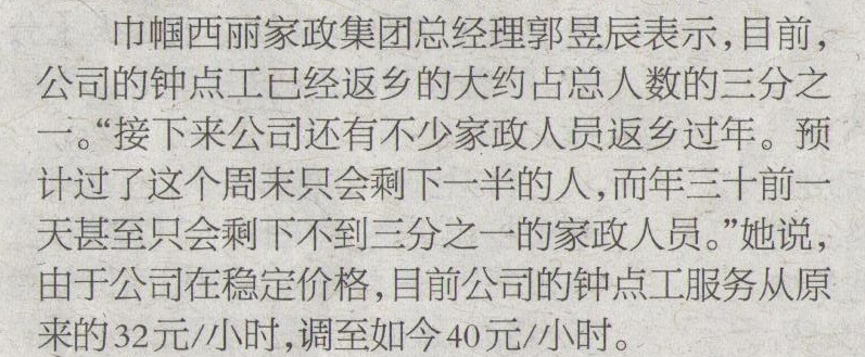 價(jià)格上漲一倍 部分公司鐘點(diǎn)工只剩三分之二