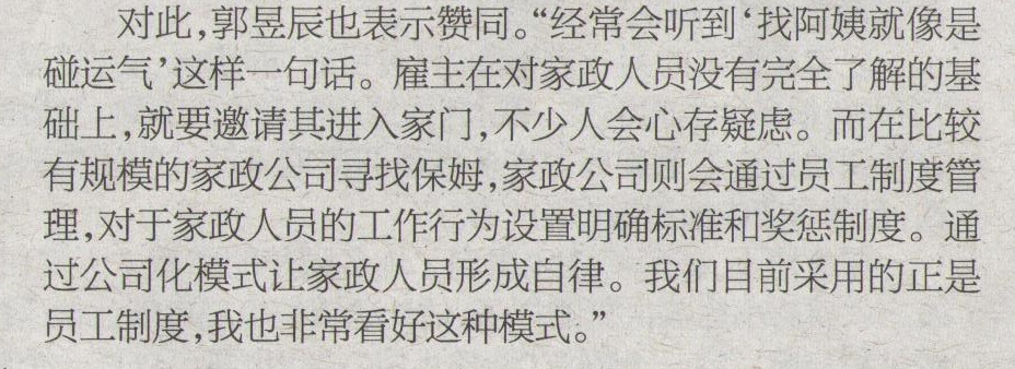 推出家政服務(wù)平臺(tái) 員工制更有利于家政市場(chǎng)管理