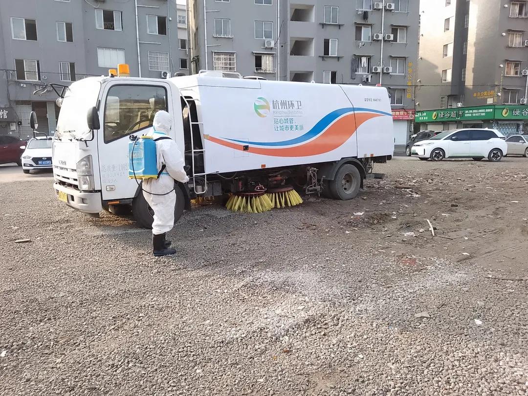 對(duì)公廁、垃圾桶 、灑水車、機(jī)掃車、壓縮車、側(cè)掛車、快保車、三輪車、臨時(shí)垃圾中轉(zhuǎn)站等進(jìn)行不間斷沖洗、除臭消殺作業(yè)。巾幗西麗集團(tuán)用實(shí)際行動(dòng)為杭州人民筑牢安全“防疫墻”。