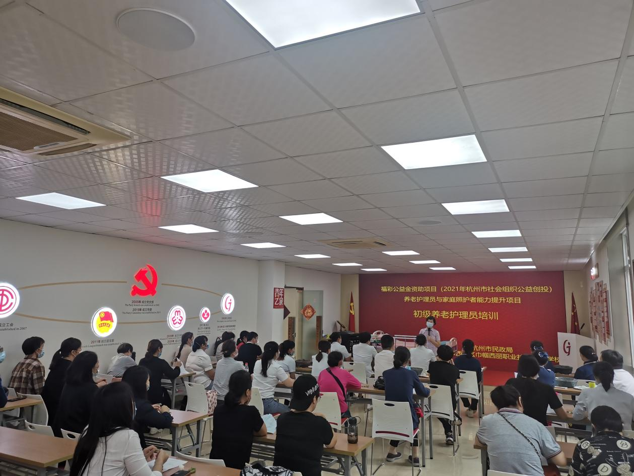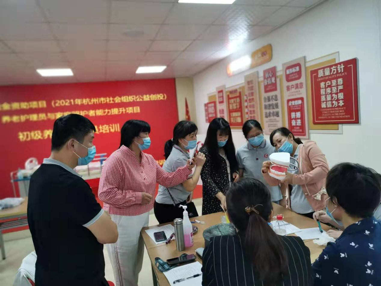 2021年10月,杭州市西湖區(qū)巾幗西麗職業(yè)技能培訓(xùn)學(xué)校第一期初級養(yǎng)老護(hù)理員培訓(xùn)圓滿結(jié)束。該培訓(xùn)貫穿于2021年杭州市社會組織公益創(chuàng)投項(xiàng)目——西湖區(qū)養(yǎng)老護(hù)理員與家庭照護(hù)者能力提升項(xiàng)目,幫助西湖區(qū)養(yǎng)老相關(guān)從業(yè)人員提高職業(yè)技能。在老師細(xì)心地指導(dǎo)下,學(xué)員們努力鉆研的奮斗下,我校有條不紊的安排下,最終45名培訓(xùn)人員中,44人成功考取初級養(yǎng)老護(hù)理員證書?。ㄆ渲?人實(shí)操通過,理論僅差3分未過)