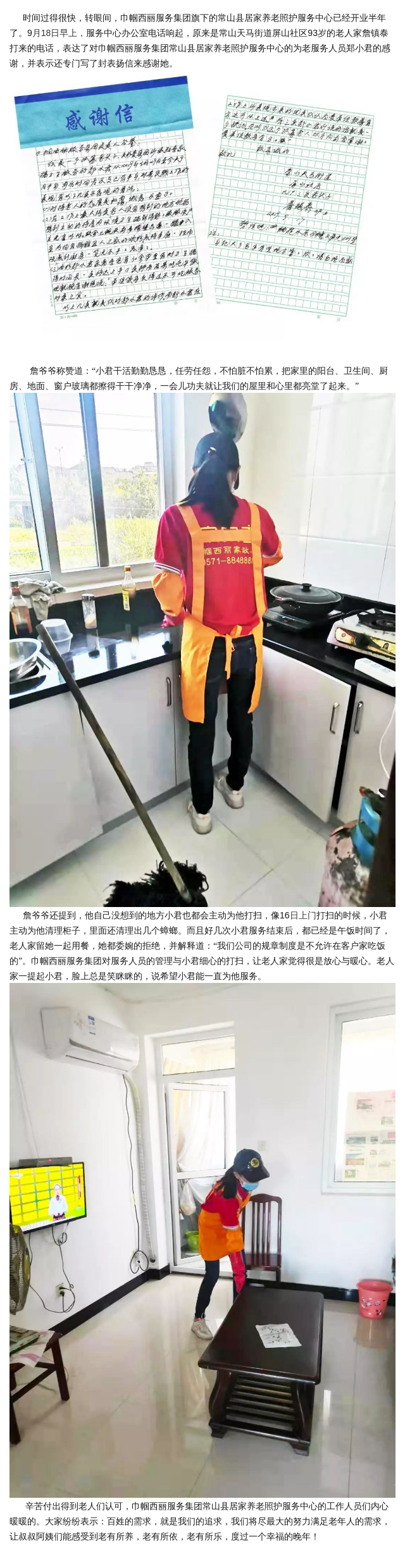 真心付出受肯定,93歲老人來信稱贊