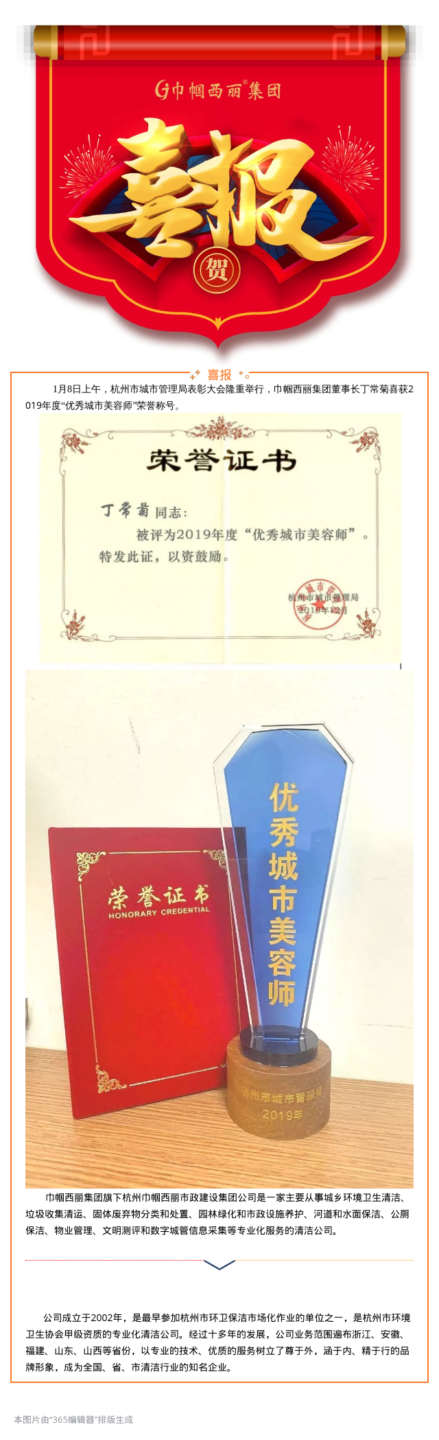 喜報!熱烈祝賀巾幗西麗集團董事長丁常菊榮獲2019年度“優(yōu)秀城市美容師”稱號