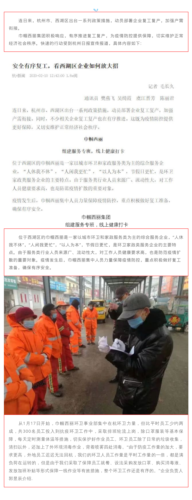 積極響應(yīng)政府復(fù)工復(fù)產(chǎn)措施,巾幗西麗集團(tuán)受杭州日?qǐng)?bào)宣傳報(bào)導(dǎo)
