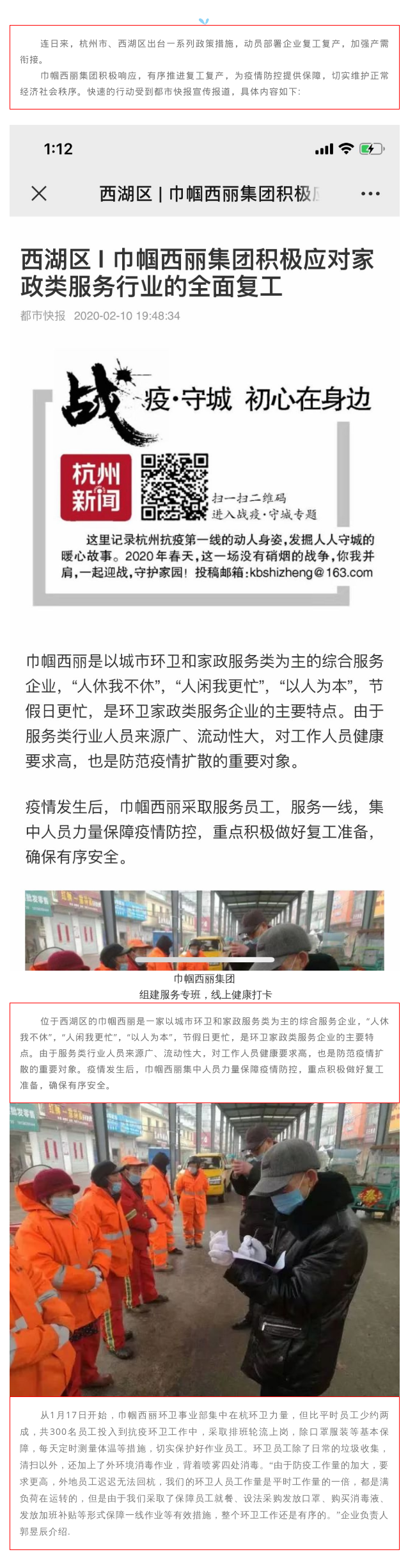 積極響應(yīng)政府復(fù)工復(fù)產(chǎn)措施,巾幗西麗集團(tuán)受都市快報(bào)宣傳報(bào)導(dǎo)