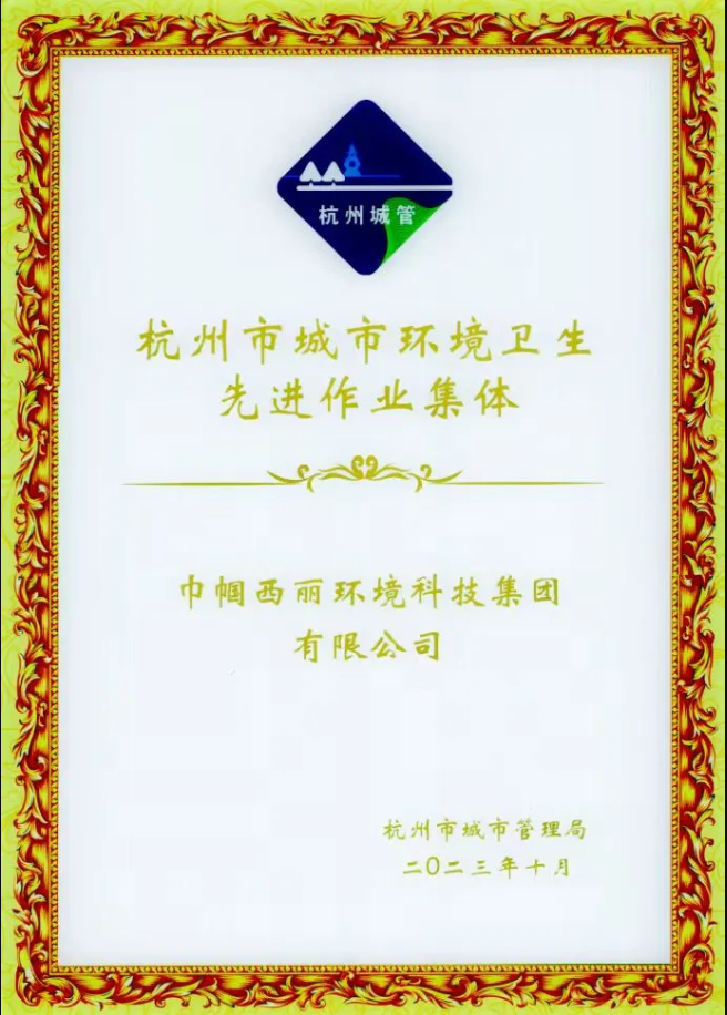 2023年10月25日,在喜慶“浙江省第二十七個環(huán)衛(wèi)工人節(jié)”之際,巾幗西麗集團(tuán)再傳喜訊,榮獲2023年度“杭州市城市環(huán)境衛(wèi)生先進(jìn)作業(yè)集體”。